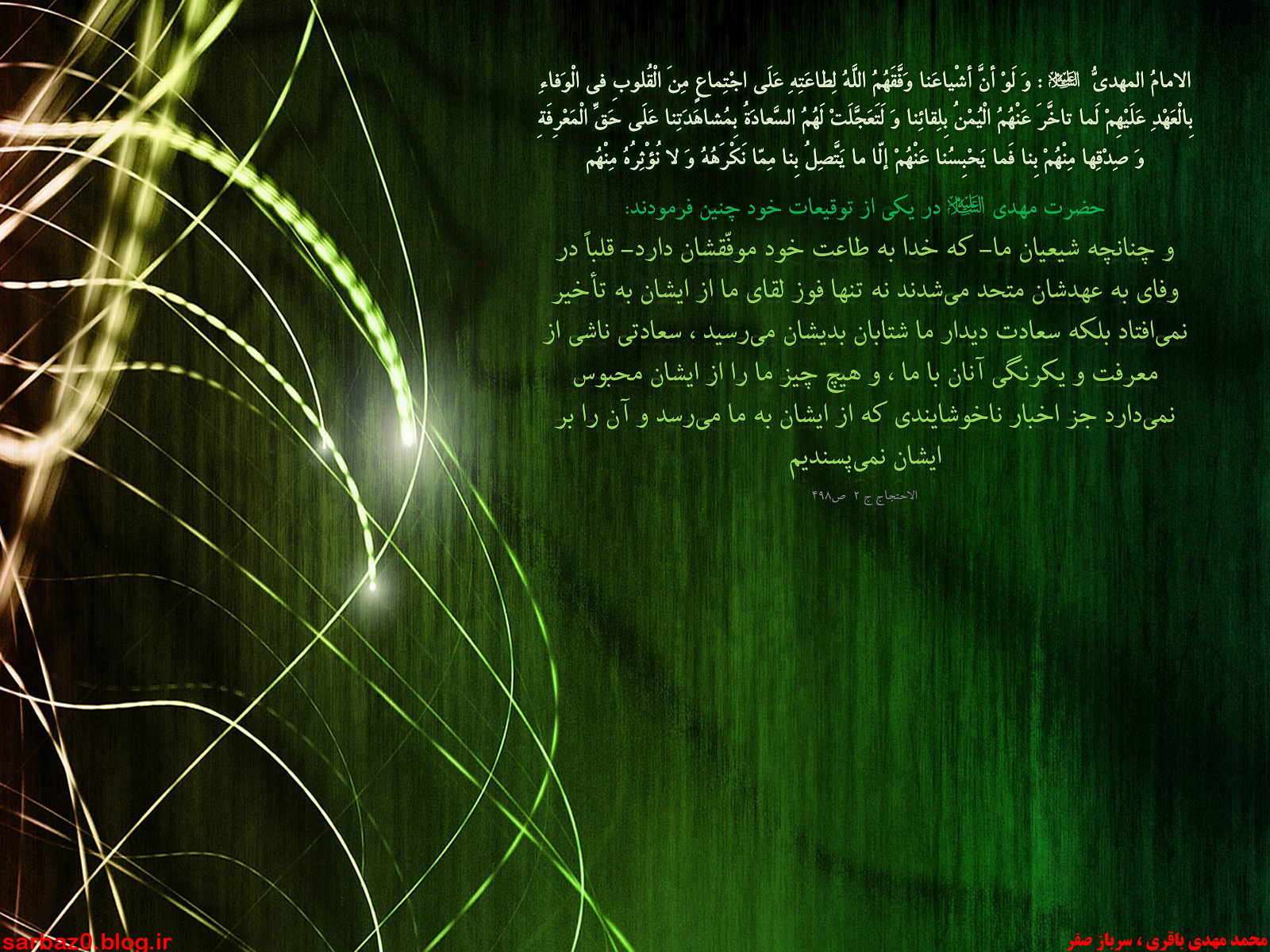 حضرت مهدی علیه السلام در یکی از توقیعات خود چنین فرمودند: